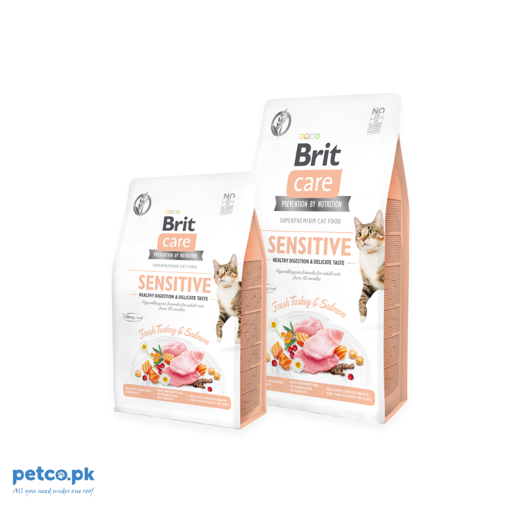 At Pet Master Discover the Brit Care Cat Grain-Free SENSITIVE HEALTHY DIGESTION AND DELICATE TASTE. Provide your cat with a gentle and nourishing diet that soothes their sensitive stomach and delights their taste buds with Brit Care Cat Grain-Free SENSITIVE HEALTHY DIGESTION AND DELICATE TASTE! Our expertly formulated recipe features: