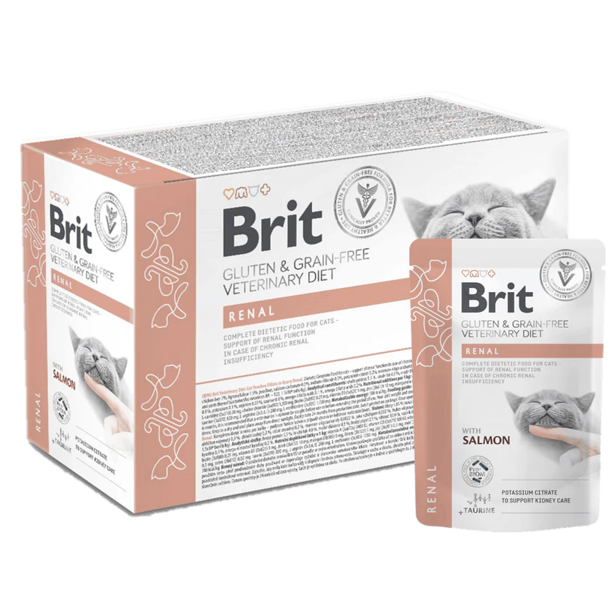 Support your dog’s kidney health with Brit Grain-Free Veterinary Diet Renal – Tuna & Salmon with Peas. This specialized veterinary wet food is designed to reduce kidney workload while providing high-quality, easily digestible proteins from tuna and salmon. Enriched with peas and balanced minerals, it helps manage chronic kidney disease (CKD) and supports overall vitality—grain-free and vet-recommended.