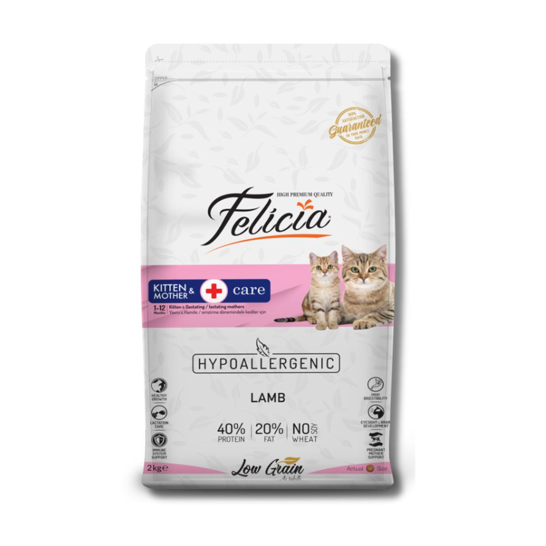 Support your kitten's rapid growth and development, and your mother cat's nutritional needs during pregnancy and lactation, with Felicia Kitten & Mother Care Cat Food with Lamb - the complete and balanced solution for a happy and healthy life."