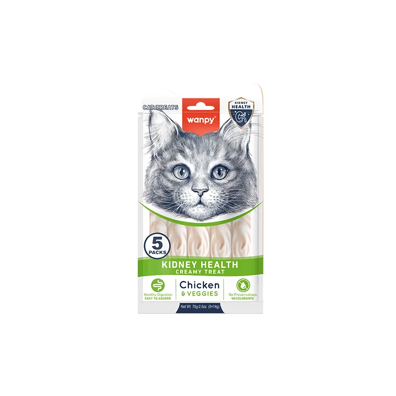 Support your cat’s kidney health with the Medicated Wanpy Kidney Health Creamy Treat. Made with high-quality chicken and fresh vegetables, this delicious creamy snack is specially formulated to promote renal function in adult cats. Not only does it provide essential nutrients, but it also doubles as a tasty treat your cat will love.
