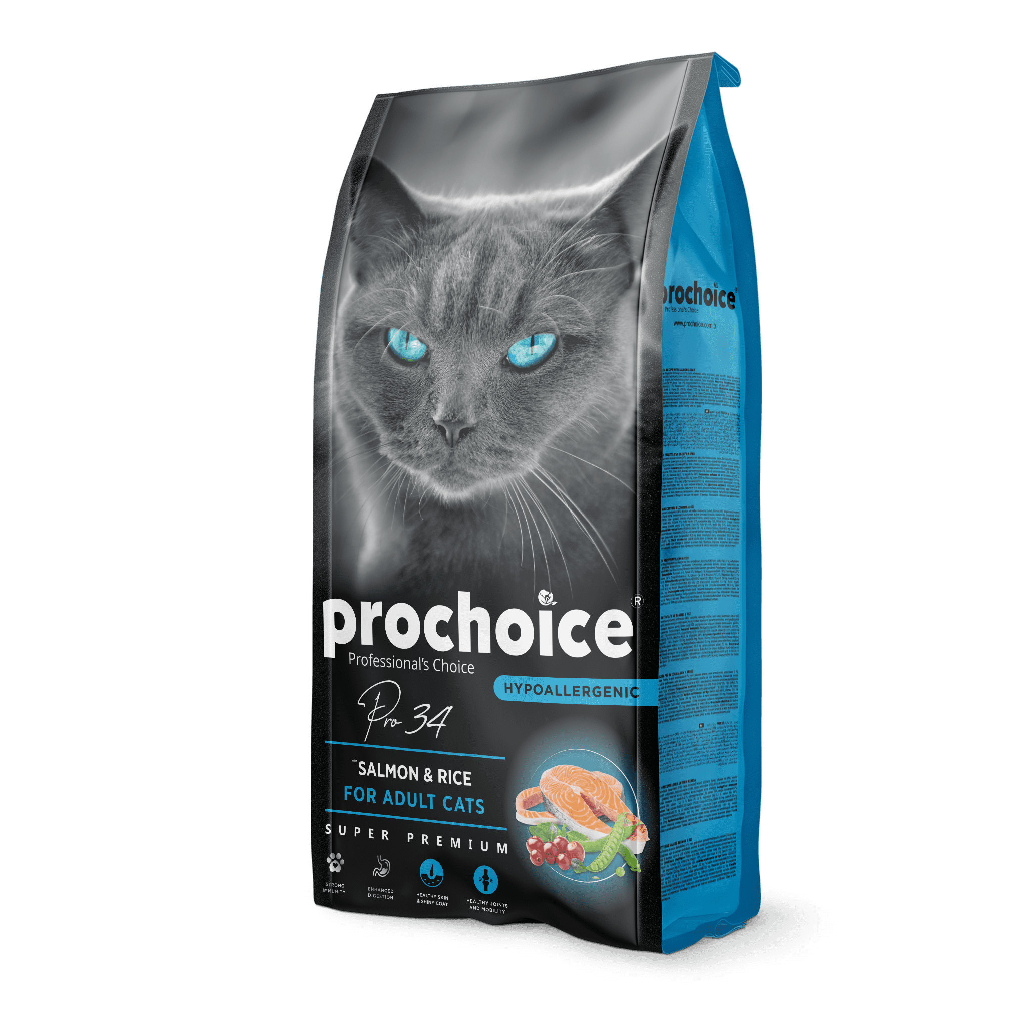 Choose Prochoice Pro34 Salmon & Rice for your adult cat's wholesome nutrition and vibrant health."